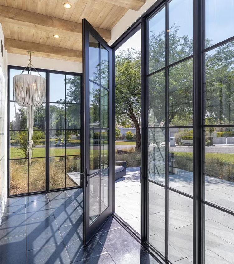 Aluminum French doors in Port Hueneme, CA, combine charm with coastal durability. Made with powder-coated frames, multi-lock systems, and double tempered glass, they allow sunlight in while keeping salty air and humidity out for long-term performance.